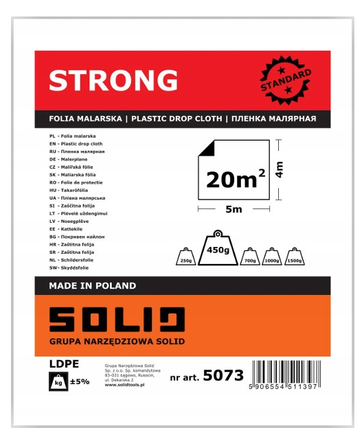 Folia malarska STRONG SOLID to produkt, który przeznaczony jest do prac malarskich, remontowych i budowlanych
