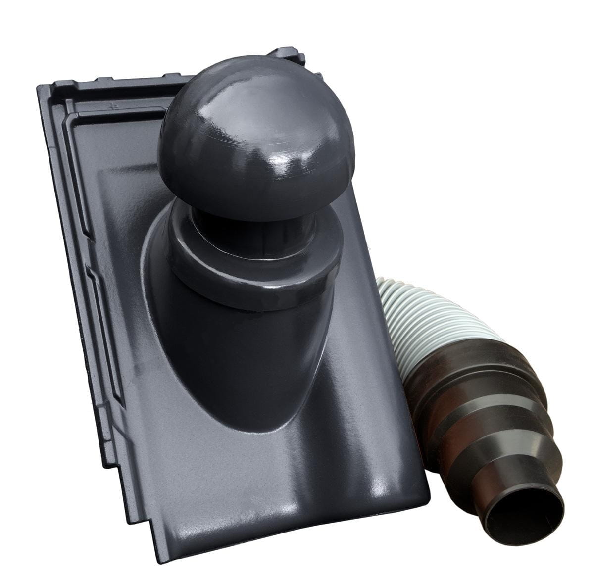 - Montaż: Produkt jest gotowym elementem systemowym, który montuje się zamiast jednej dachówki podstawowej. Należy go połączyć z rurą kanalizacyjną elastycznym przyłączem pod połacią dachu.