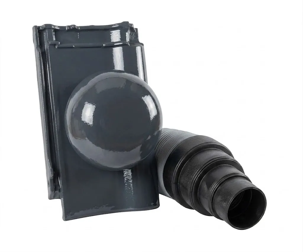 - Ważna informacja: Do odpowietrzania pionów kanalizacyjnych (usuwania zapachów z rur) zaleca się stosowanie mniejszego elementu: kominek odpowietrzający Ø100mm grafitowa glazura. Wersja Ø150mm służy do wymiany powietrza w pomieszczeniach.