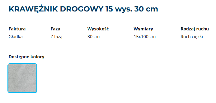 | Kolor | Szary (naturalny beton) | Uniwersalny, techniczny wygląd zgodny z normami drogowymi |