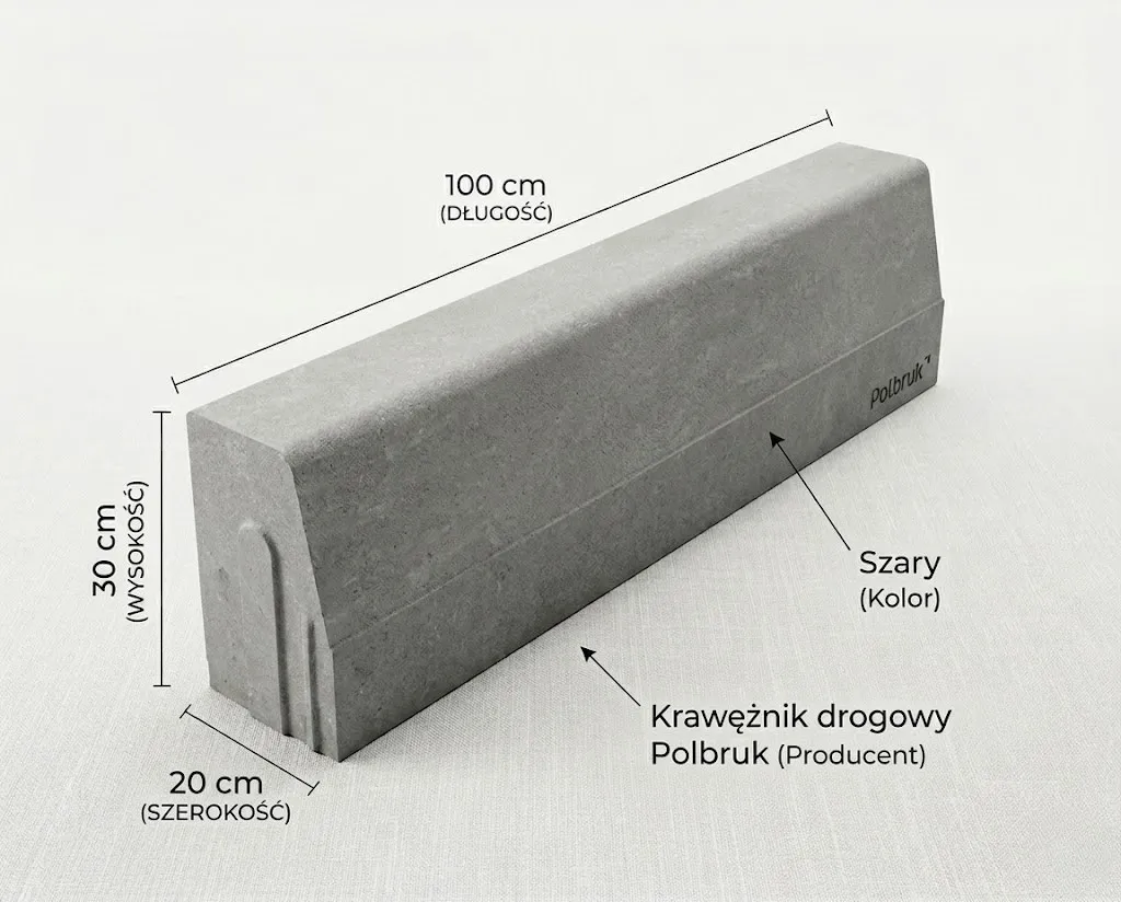 Krawężnik Drogowy Polbruk 20x30x100 cm Szary – Standard Ciężki