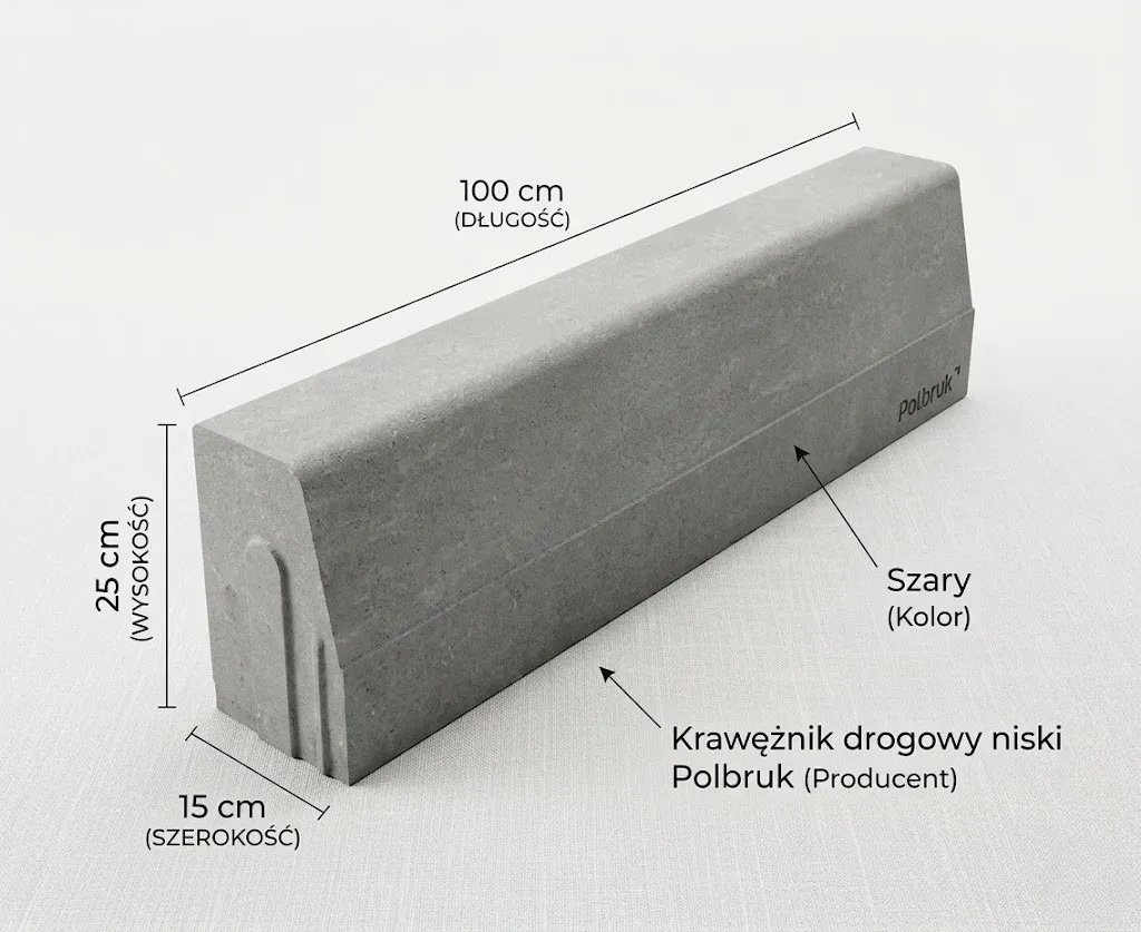 Krawężnik Drogowy Niski Polbruk 15x25x100 cm Szary – Typ Najazdowy