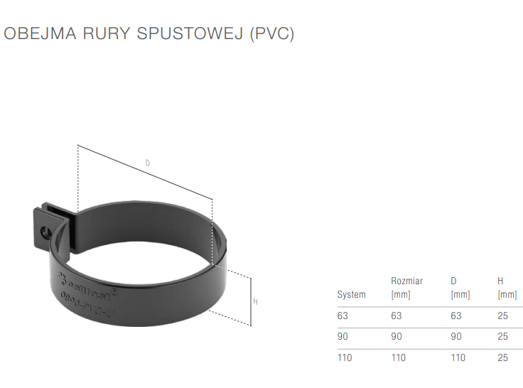 Obejma jest elementem zaciskowym, który musi być idealnie dopasowany do średnicy rury spustowej Bryza. Pamiętaj, aby dobrać odpowiedni trzpień mocujący (do kupienia oddzielnie), uwzględniając grubość izolacji i rodzaj ściany.