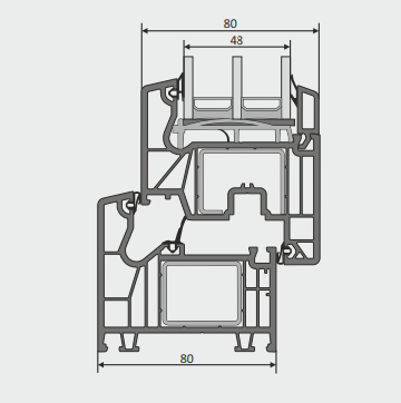 - CIEPŁE: sześciokomorowe profile o głębokości zabudowy 80 mm oraz pakiety trzyszybowe 48 mm z ciepłą ramką zapewniają doskonałą izolacyjność termiczną okna na poziomie 0,78 W/m2K.