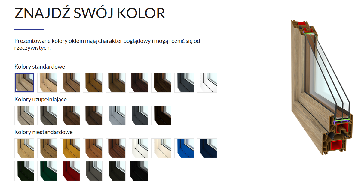 - HARMONIJNE: cztery kolory rdzenia profili tworzą harmonijne połączenie z bogatą gamą oklein. Okna Perfectherm doskonale prezentują się zarówno w klasycznej bieli jak i w drewnopodobnych foliach dekoracyjnych oraz modernistycznych kolorach z palety RAL