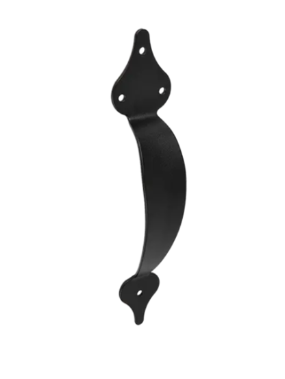 Ozdobny uchwyt z dekoracyjnymi przetłoczeniami do drzwi okiennic czy skrzyń.