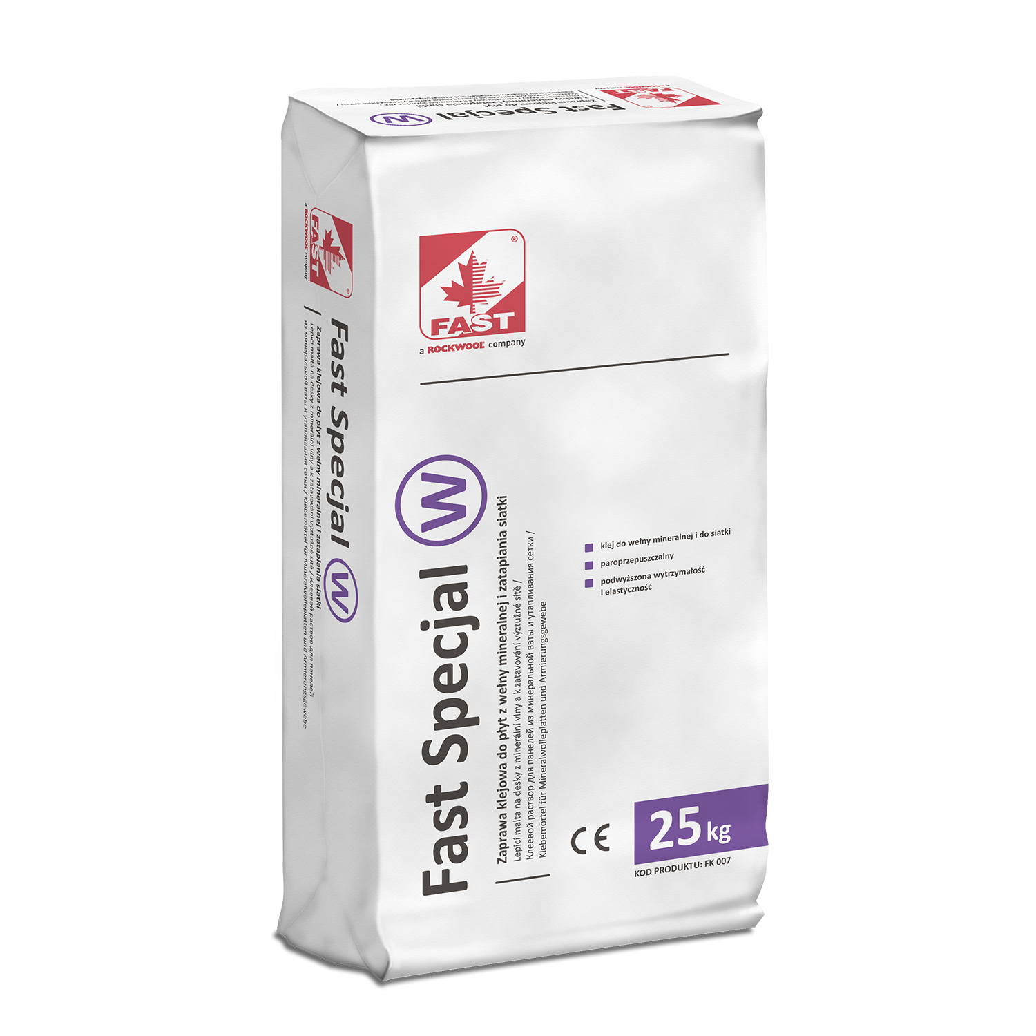- Zaprawa FAST SPECJAL W służy do przyklejania lameli i płyt z wełny mineralnej na podłożach mineralnych oraz do wykonywania warstwy zbrojonej przy ocieplaniu budynków systemem ETICS FAST W