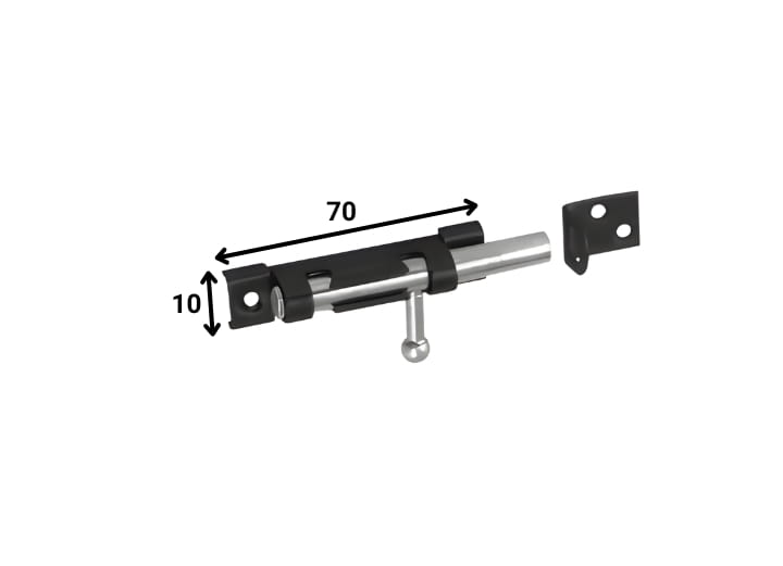 Zasuwka z ryglem okrągłym WOS 70x10 mm – Czarna Duplex