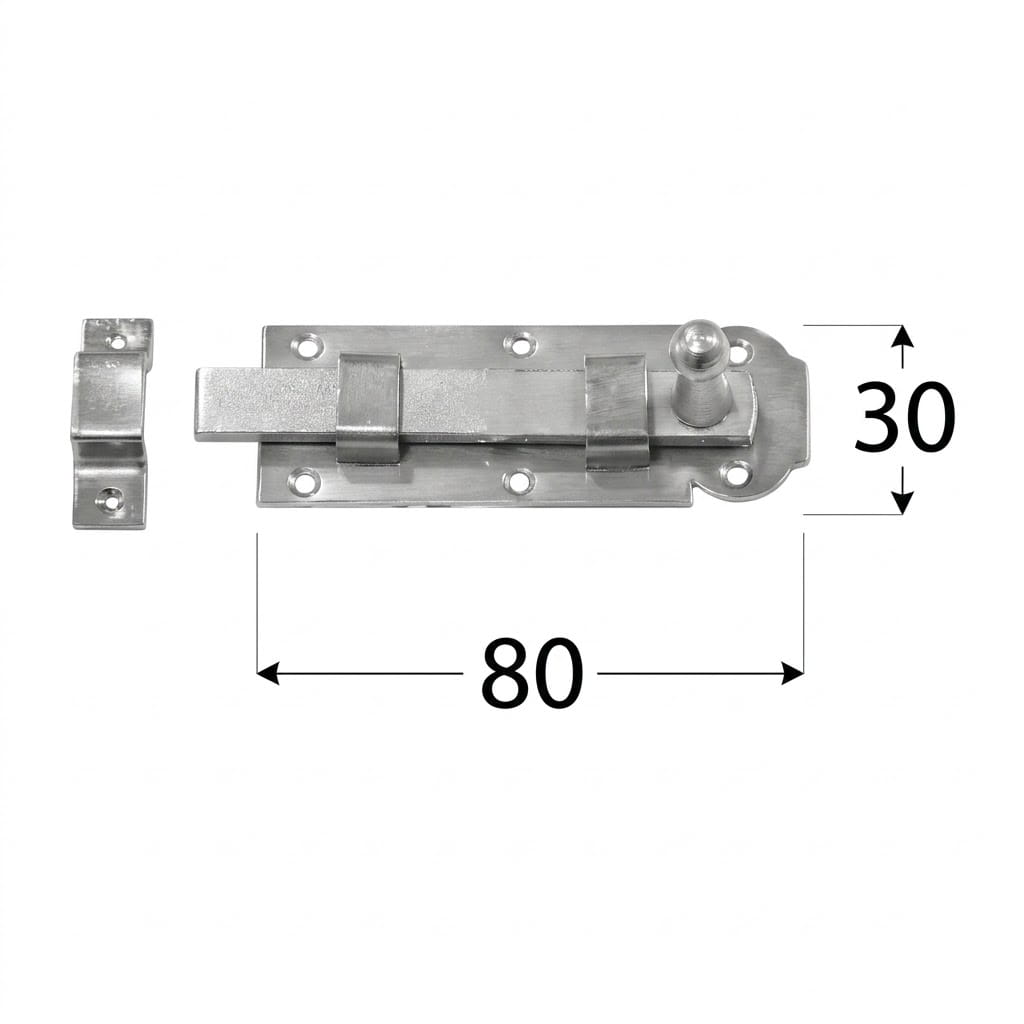 Zasuwka z ryglem płaskim W 80x30x2,5 mm – Ocynk Srebrny