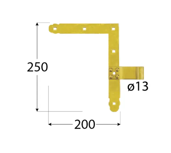 Zawias z ozdobnym wykończeniem przeznaczony do montażu bram furtek czy okiennic. Tworzy dodatkową ramę i wzmacnia całą konstrukcję. Zagięta część elementu służy do nasadzenia konstrukcji na uchwyt czopowy.