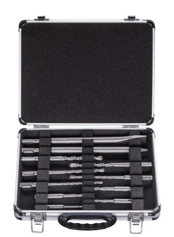 Zawiera najczęściej używane wiertła i dłuta, zapakowane w solidną, aluminiową walizkę ułatwiającą transport i przechowywanie.