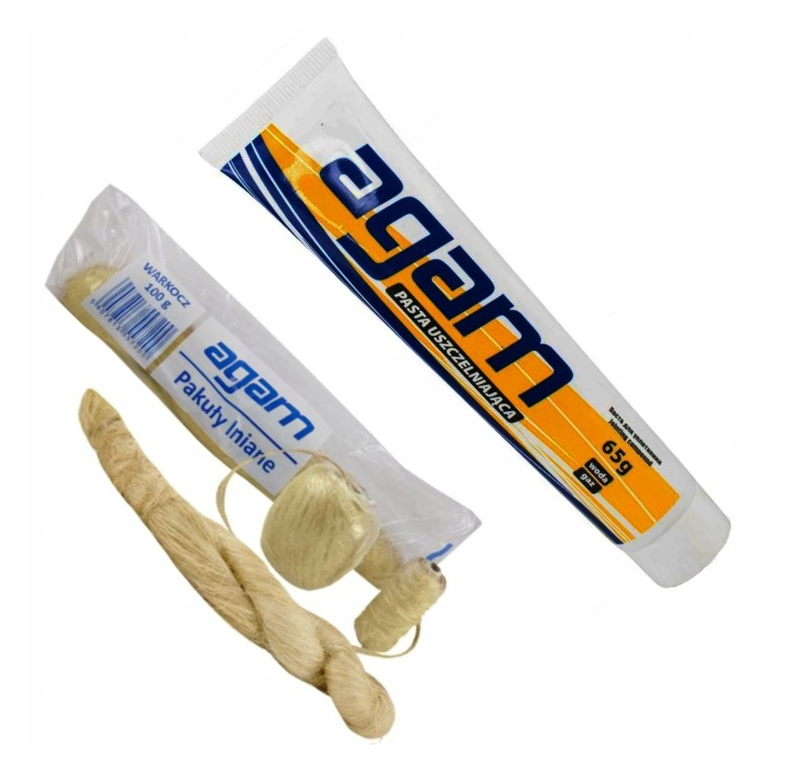 Zestaw uszczelniający - składa się z pasty uszczelniającej Agam oraz pakuł lnianych.