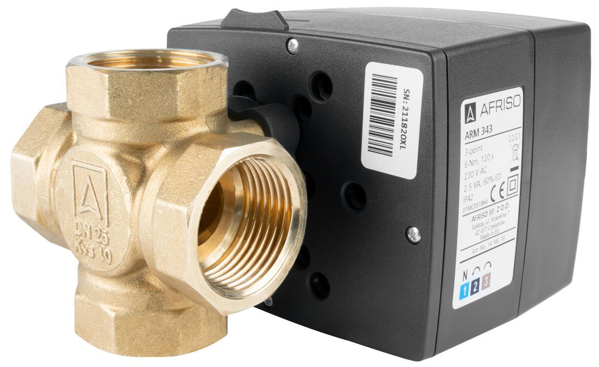 Zestaw regulacyjny ProClick: 4-drogowy obrotowy zawór mieszający ARV 484 ProClick, DN25, Rp1", Kvs 10 + siłownik elektryczny ARM 343 ProClick