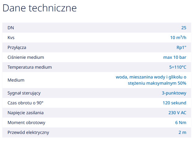 - Zakres obrotu siłownika – 90 stopni.
